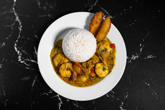 Each meal comes with a choice of dirty rice or seasoned yellow rice and two additional sides.
